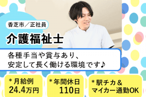 ≪香芝市/介護福祉士/正社員≫★年間休日114日以上◆希望休あり◆駅チカ徒歩2分◆月給例20.6万円~★サービス付き高齢者向け住宅でのお仕事です☆(kyo)