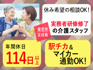 ≪香芝市/実務者研修修了/正社員≫◆駅徒歩2分&マイカー通勤OK◎年間休日114日以上◎希望休あり◎丁寧な指導◆サービス付き高齢者向け住宅でのお仕事です☆(kyo)