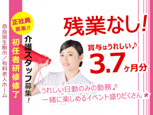 ≪生駒市/初任者研修修了/正社員≫◆残業なし☆住宅手当!扶養手当!皆勤手当まであり☆未経験から成長できる!安心サポート◆介護付有料老人ホームでのお仕事です☆(kyo)