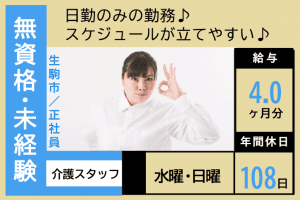 ≪生駒市/無資格・未経験OK!/正社員≫◆未経験からスタート歓迎☆賞与たっぷり3.7ヶ月分☆通勤手当は上限なし!残業なし◆デイサービスで介護のお仕事です☆(kyo)