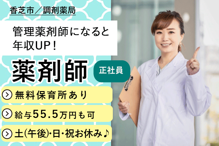 ≪香芝市/薬剤師/正社員≫月収例49.6万円♪土曜日午後・日曜日・祝日お休み★駅チカ徒歩2分◎調剤薬局でのお仕事です☆(kyo)