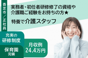 ≪香芝市/介護士(特養)/正社員≫\2025年6月、給与大幅改定!/月収例26.7万円♪充実の研修制度&保育園完備でお子様がいらっしゃっても働きやすい♪(kyo)