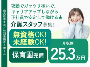 ≪香芝市/介護士(特養)/正社員≫\2025年6月、給与大幅改定!/月収例26.7万円♪充実の研修制度&保育園完備でお子様がいらっしゃっても働きやすい♪(kyo)