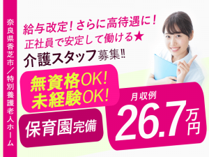 ≪香芝市/介護士(特養)/正社員≫\2025年6月、給与大幅改定!/月収例26.7万円♪充実の研修制度&保育園完備でお子様がいらっしゃっても働きやすい♪(kyo)