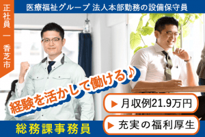 ≪香芝市/総務課事務員/正社員≫◆2025年6月、給与大幅改定!あなたの頑張りに、もっと応える待遇へ★月収例23.7万円★保育園完備♪介護事業本部事務局で設備メンテナンス♪(kyo)