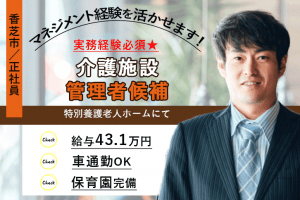≪香芝市/介護施設 管理者/正社員≫月収例41.6万円♪介護施設でのマネジメント経験を活かせます★充実の福利厚生◎特養で施設管理者(幹部候補)のお仕事です♪(kyo)