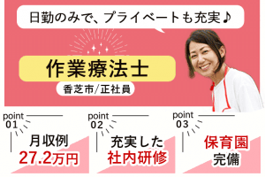 ≪香芝市/作業療法士/正社員≫月収例27.2万円!嬉しい日勤のみ♪充実の研修制度&保育園完備でお子様がいらっしゃっても働きやすさ抜群♪(kyo)