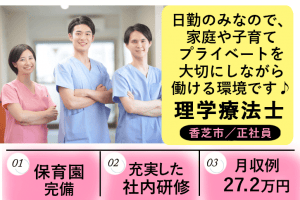 ≪香芝市/理学療法士/正社員≫月収例27.2万円!嬉しい日勤のみ♪充実の研修制度&保育園完備でお子様がいらっしゃる方も働きやすい♪特養☆(kyo)