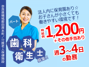 ≪磯城郡/歯科衛生士/パート≫★週3~4日!日勤のみ◎処遇改善臨時手当あり◎託児施設の保育料無料◎駅チカ&マイカー通勤OK★超強化型老健でのお仕事です☆(kyo)