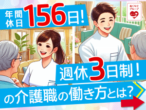 挿絵 週休3日制 年間休日156日 介護士 介護福祉士 ぬくもり