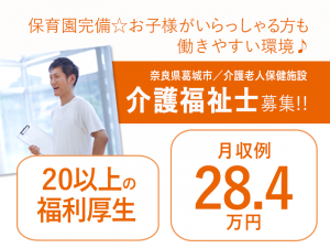 ≪葛城市/介護福祉士(老健)/正社員≫\給与UPしました!/2025年6月、納得の働き方、実現しませんか?年収400万円以上可能♪(kyo)