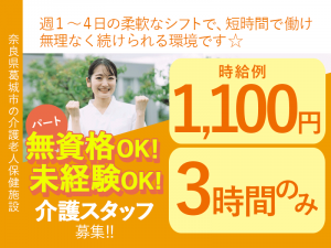 ≪葛城市/初任者研修修了/パート≫★給与改定★2025年6月~さらに高待遇に!週1~4日OK★3時間から6時間勤務が選べる★髪色自由★介護老人保健施設でのお仕事です☆(kyo)