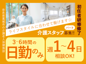 ≪葛城市/初任者研修修了/パート≫★給与改定★2025年6月~さらに高待遇に!週1~4日OK★3時間から6時間勤務が選べる★髪色自由★介護老人保健施設でのお仕事です☆(kyo)