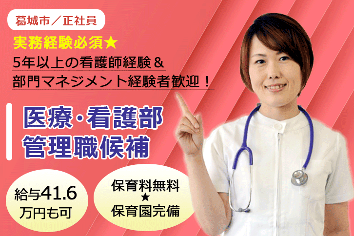 ≪葛城市/医療・看護部 管理者/正社員≫月収例41.6万円♪5年以上の看護師経験&部門マネジメント経験者歓迎!職員無料の保育園あり◎(kyo)