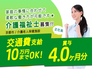 ≪京都市/介護福祉士/正社員≫★通勤手当あり☆賞与年2回☆資格取得支援制度が充実☆託児施設あり☆柔軟な勤務体系★介護老人保健施設でのお仕事です☆