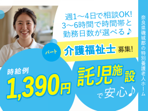 ≪磯城郡/介護福祉士/パート≫★\給与UPしました!/2025年6月、納得の働き方、実現しませんか?時給例1,390円★特別養護老人ホームでのお仕事です☆(kyo)
