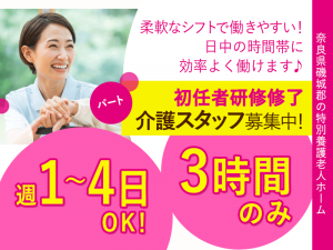 ≪磯城郡/初任者研修修了/パート≫★2025年6月、待遇を全面見直し★3時間~6時間勤務が選べる◎昇給あり◎駅徒歩5分&マイカー通勤OK♪託児施設完備で安心★特別養護老人ホームでのお仕事です☆(kyo)
