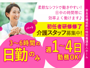≪磯城郡/初任者研修修了/パート≫★2025年6月、待遇を全面見直し★3時間~6時間勤務が選べる◎昇給あり◎駅徒歩5分&マイカー通勤OK♪託児施設完備で安心★特別養護老人ホームでのお仕事です☆(kyo)