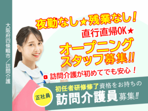 ≪四條畷市/訪問介護員(初任者研修修了)/正社員≫◆オープニングスタッフ大募集☆訪問介護が初めてでも安心!夜勤なし・残業なし!直行直帰OK◆訪問介護のお仕事です☆(osa)