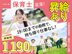 ≪熊取町/保育士/フルタイムパート≫★★年間休日112日◎時給UPの時間帯もあり◎日曜・祝日・園の休園日・年末年始は休み◎フルタイムパートの保育士★★こども園でのお仕事です☆(kyo)