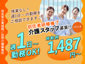 ≪北葛城郡/初任者研修修了/パート≫★未経験者OK♪食事代補助あり♪研修充実♪時給例1,487円~◎正社員登用あり★訪問介護事業所でのお仕事です☆(kyo)
