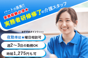 ≪奈良市/実務者研修修了/パート≫夜勤専従★週2~3日の勤務OK◎時給例1275円♪賞与あり!特養で介護のお仕事です☆