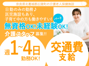 ≪北葛城郡/未経験OKの介護士/パート≫★給与水準を一新!2025年6月、待遇を全面見直し!★週1~4日OK◎託児施設完備◎髪色自由★介護老人保健施設でのお仕事です☆(kyo)