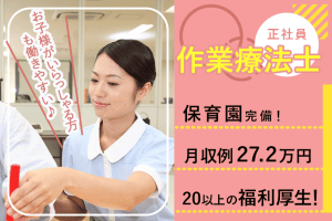 ≪北葛城郡/作業療法士/正社員≫月収例27.2万円!嬉しい日勤のみ♪充実の研修制度&保育園完備でお子様がいらっしゃっても働きやすさ抜群♪(kyo)