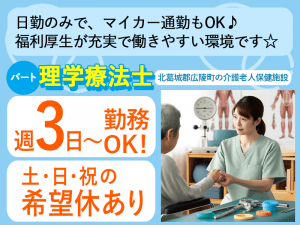 ≪北葛城郡/理学療法士/パート≫★土日祝希望休あり◎日勤のみ◎週3~5日OK◎交通費支給★資格が活かせる★老健のお仕事です☆(kyo)