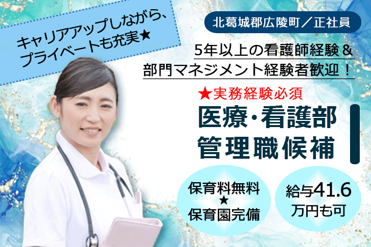 ≪北葛城郡/医療・看護部 管理者/正社員≫月収例41.6万円♪5年以上の看護師経験&部門マネジメント経験者歓迎!職員無料の保育園あり◎(kyo)