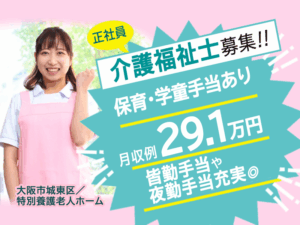 ≪大阪市/介護福祉士/正社員≫月収例29.1万円♪皆勤手当や夜勤手当充実◎年末年始休暇5日&リフレッシュ休暇あり★特養で介護のお仕事です☆(osa)