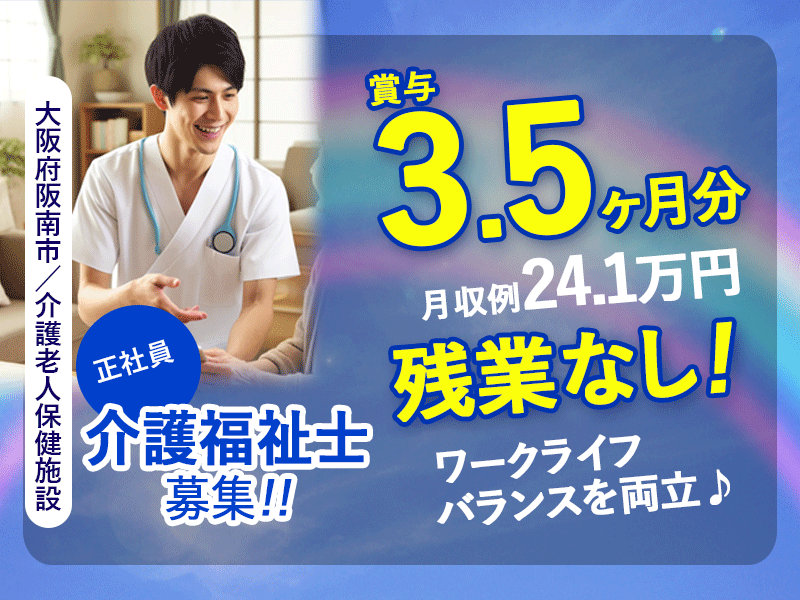 ≪阪南市/介護福祉士/正社員≫月収例24.1万円&賞与3.5ヶ月♪残業なし!介護老人保健施設で介護のお仕事です☆(osa)