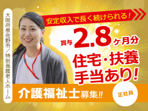 ≪泉佐野市/介護福祉士/正社員≫月収例23.2万円~☆研修制度が充実☆マイカー通勤可☆様々な年代の方が活躍中!!特養での介護のお仕事です☆(osa)