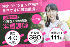 ≪交野市/准看護師/正社員≫★賞与4.0ヶ月分◎月収例39.0万円◎年間休日111日◎★老健でのお仕事です☆(osa)
