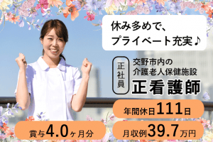 ≪交野市/正看護師/正社員≫★月収例39.7万円◎年間休日111日◎賞与4.0ヶ月分◎★老健でのお仕事です☆(osa)