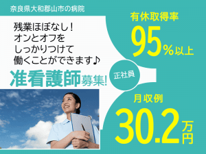 ≪大和郡山市/准看護師/正社員≫賞与3.8ヶ月分♪月収例30.2万円★残業ほぼなし!24時間託児所完備◎病院で看護のお仕事です★(kyo)