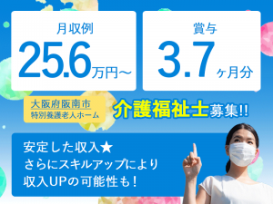 ≪阪南市/介護福祉士/正社員≫★地域に貢献!阪南市勤務★2018年に新築移転★月収例25.6万円~★たっぷり賞与3.70ヶ月★残業なし!★特別養護老人ホームでのお仕事です☆(osa)