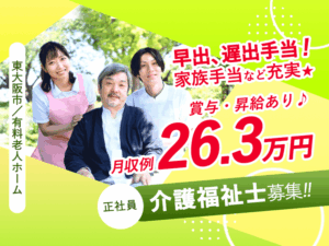 ≪東大阪市/介護福祉士/正社員≫賞与・昇給あり♪月収例26.3万円♪早出、遅出手当!家族手当など充実◎有料老人ホームで介護のお仕事です★(osa)