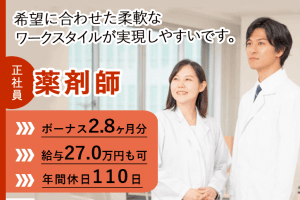≪堺市/薬剤師/正社員≫賞与2.8ヶ月分◎月収例27.0万円♪嬉しい日・祝休み!年間休日110日!病院で病棟調剤のお仕事です☆