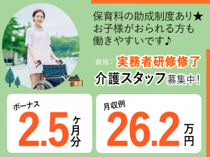 ≪泉佐野市/実務者研修修了/正社員≫月収例26.6万円♪保育料全額補助★ボーナス2.5ヶ月分◎処遇改善手当一時金あり!老健でのお仕事です☆(osa)