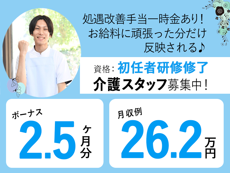 ≪泉佐野市/初任者研修修了/正社員≫ボーナス2.5ヶ月分◎処遇改善手当一時金あり!月収例26.6万円♪保育料全額補助★老健でのお仕事です☆(osa)