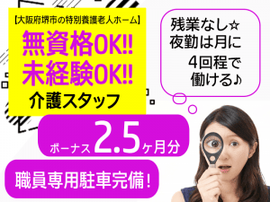≪堺市/無資格・未経験OKの介護士/正社員≫賞与2.5ヶ月分♪月収例23.7万円◎退職金は勤続期間不問で適用!特養で介護のお仕事です☆(osa)
