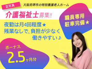 ≪堺市/介護福祉士/正社員≫賞与2.5ヶ月分♪月収例24.7万円◎職員専用駐車場完備!特養で介護のお仕事です☆(osa)
