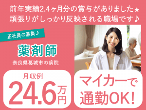 ≪葛城市/薬剤師/正社員≫★月収例24.6万円◎マイカー通勤OK★交通費支給★和気あいあいとした職場★病院の薬剤師のお仕事です☆(kyo)