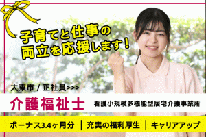 ≪大東市/介護福祉士/正社員≫賞与3.4ヶ月分♪子育てと仕事の両立を応援♪看多機で介護のお仕事です☆(osa)