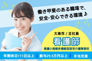 ≪大東市/看護師/正社員≫月収例29.5万円以上!医療者サポート制度の充実♪年間休日111日以上!看護小規模多機能型居宅介護でのお仕事です★(osa)