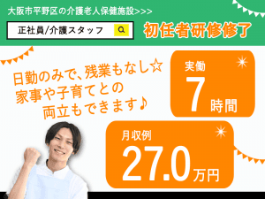 ≪大阪市平野区/初任者研修修了/正社員≫日勤のみ◎賞与あり◎月収例27.0万円♪実働7時間◎老健で介護のお仕事です☆(osa)