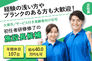 ≪大東市/施設長候補(初任者研修修了)/正社員≫月収例40万円◎年間休日107日!サービス付き高齢者向け住宅でのお仕事です☆(osa)