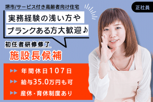 ≪堺市/施設長候補(初任者研修修了)/正社員≫月収例35万円◎年間休日107日!サービス付き高齢者向け住宅でのお仕事です☆(osa)