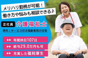 ≪堺市/介護福祉士/正社員≫月収例29万円◎年間休日107日!サービス付き高齢者向け住宅で介護のお仕事です☆(osa)